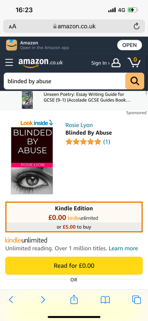 Buy it here: https://www.amazon.co.uk/Blinded-Abuse-Rosie-Lyon-ebook/dp/B09Q1HMF9X/ref=mp_s_a_1_2?keywords=blinded+by+abuse&qid=1642419851&sr=8-2